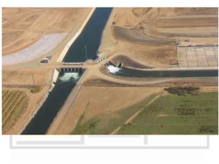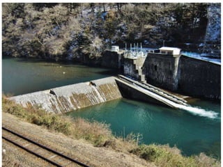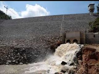 A weir is a solid structure built across a river to raise the water level and divert water into canals. There are different types of weirs including masonry weirs with vertical drops, rock fill weirs with sloping aprons, and concrete weirs with downstream slopes. Weirs can fail due to subsurface piping, uplift pressure, surface water suction or scouring. Remedies include installing sheet piles and ensuring sufficient floor thickness and length. A barrage is similar to a weir but uses gates rather than a solid structure to control water levels. Barrages are more expensive than weirs but allow better control of water levels and less silting during floods by raising the gates.