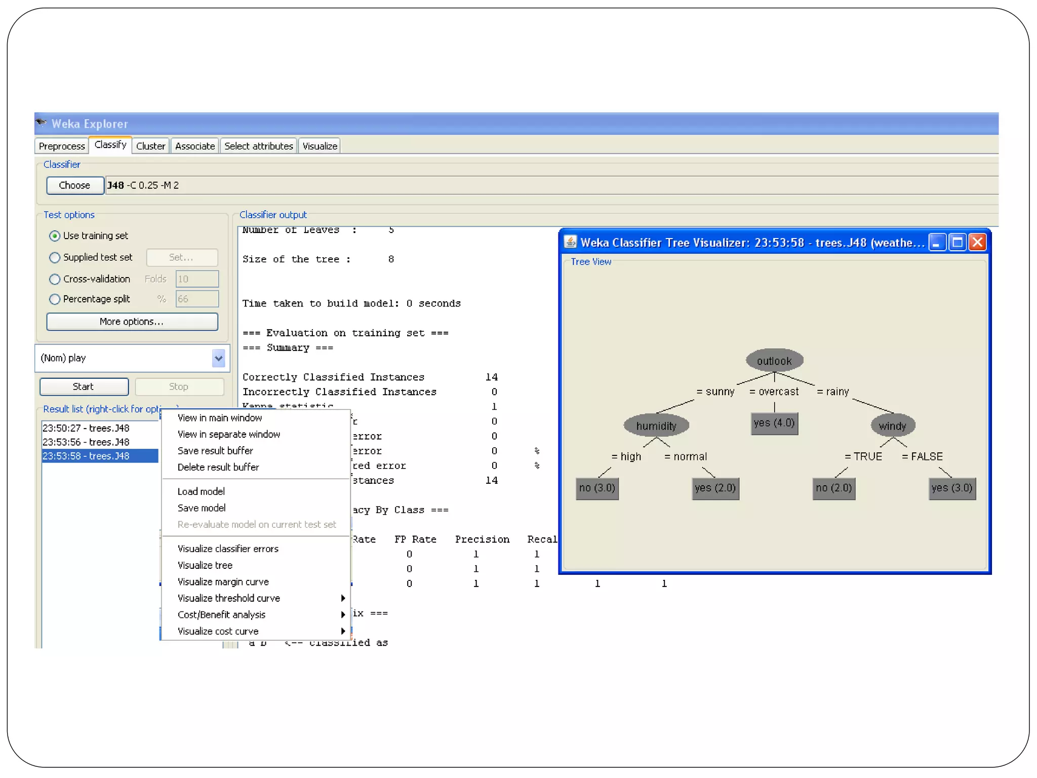 Weka classification 1. 2. 3. Predicted target must be categorical