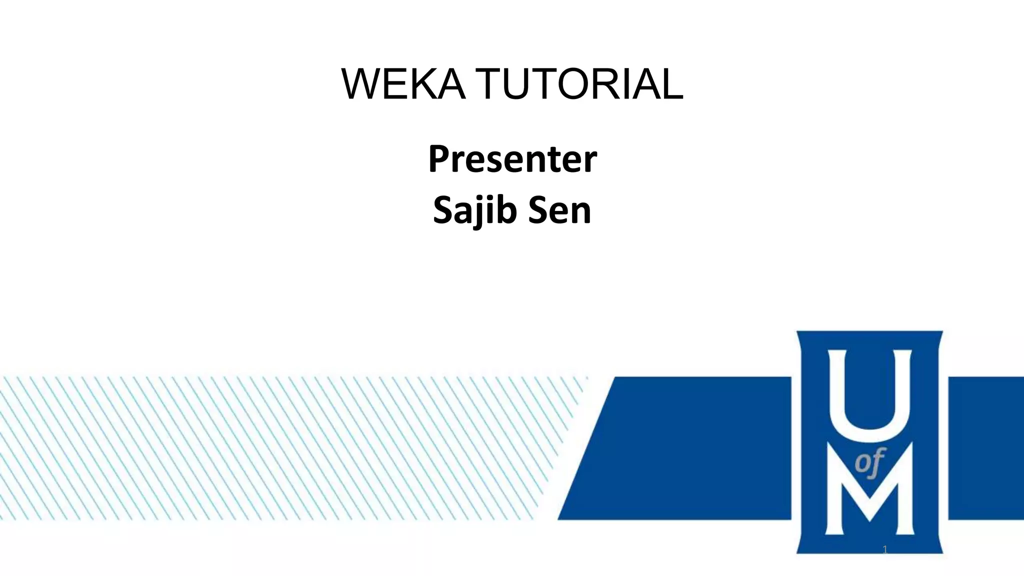 This document provides an outline for a WEKA tutorial that discusses various data preprocessing techniques including creating datasets, generating training/validation/test sets, discretization, numeric transformation, and handling outliers. It also gives examples of decision tree and dataset exploration in WEKA.