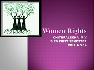 The document discusses women's rights from historical and current perspectives. It begins by outlining the objectives of examining issues related to women's rights, citizenship, and development. It then discusses how women's rights refer to the freedoms and entitlements of women and girls that may be ignored or suppressed in some societies. Several key women's rights are mentioned like rights to own property, freedom of expression, and participation in government. The document also examines laws against domestic violence in India. While progress has been made, issues still remain regarding reproductive rights, violence against women, and achieving full equality and justice. The struggles for women's rights have evolved over the past centuries from a focus on political equality to social and cultural equality.