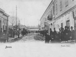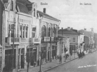 This document provides an introduction to Bacau County in Romania. It discusses the county's natural scenery and historic buildings. It also mentions the hospitality of the local Christians. Additionally, it references the Cucuteni culture and artifacts found in the area dating back over 35,000 years. Finally, it includes four poems by the Romanian poet George Bacovia that reference nature, seasons, and snow.