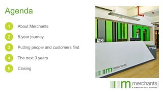 The document summarizes a presentation given to iiNet Cape Town staff. It outlines iiNet's 8-year partnership with Merchants, during which time the Cape Town site grew from 170 to over 1000 staff. It discusses iiNet's focus on customer service excellence and putting people first. Charts show improving NPS, reducing AHT and increasing sales over time. The presentation highlights initiatives to promote staff wellbeing, development and pride in the iiNet brand. It concludes with discussing future goals such as developing leaders, sharing best practices, and continuing to improve efficiency while maintaining a focus on service.