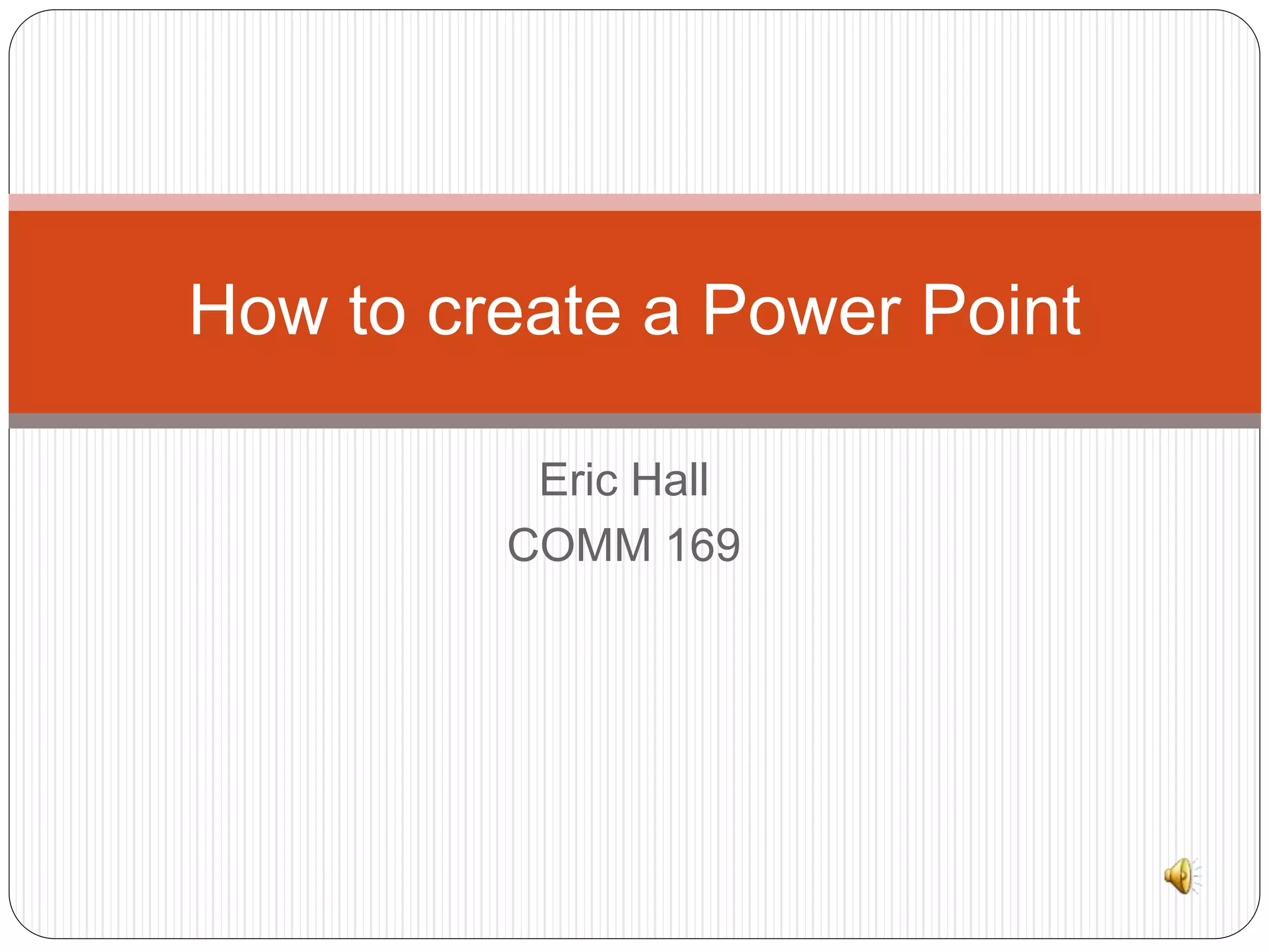 To create a PowerPoint presentation, first open PowerPoint by clicking the Windows icon and selecting the PowerPoint app. This will start a new, blank presentation. The document then outlines how to add text, slides, images, animation, and save the presentation. Steps include clicking the design tab to change themes, clicking text boxes to add titles and body text, using the home tab or right-click menu to add slides, inserting pictures using the insert tab, and saving using the floppy disk icon.