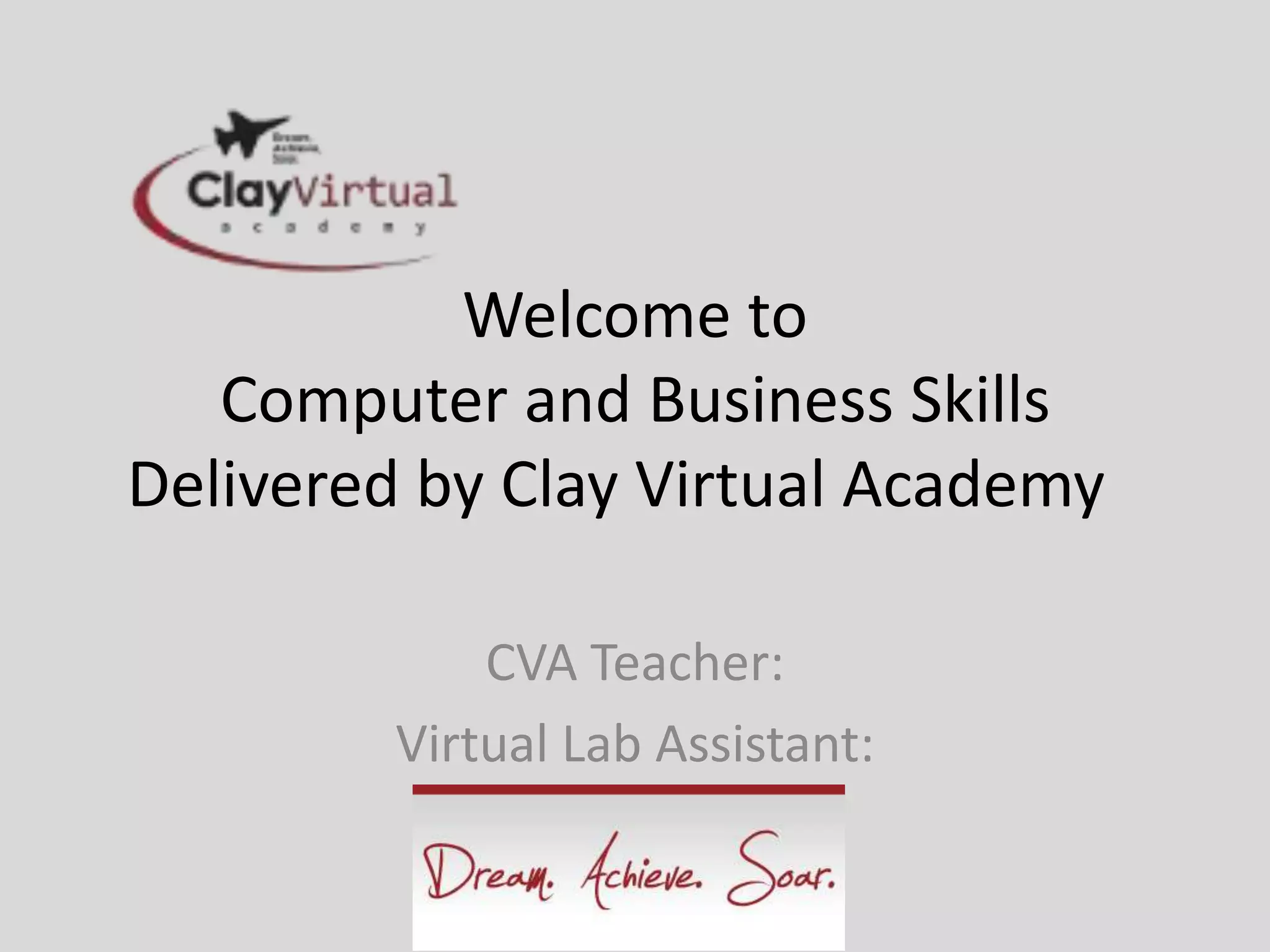 Clay Virtual Academy is a virtual school in Clay County that offers online courses for students from kindergarten to 12th grade, either full-time or part-time, with the goal of helping students succeed in their education. The document introduces CVA's principal, teachers, and the role of virtual learning lab assistants who help students taking online classes in computer labs at their regular schools. It provides expectations and instructions for students on properly using computer equipment, managing their time, asking questions, and logging into Blackboard to access their online courses.