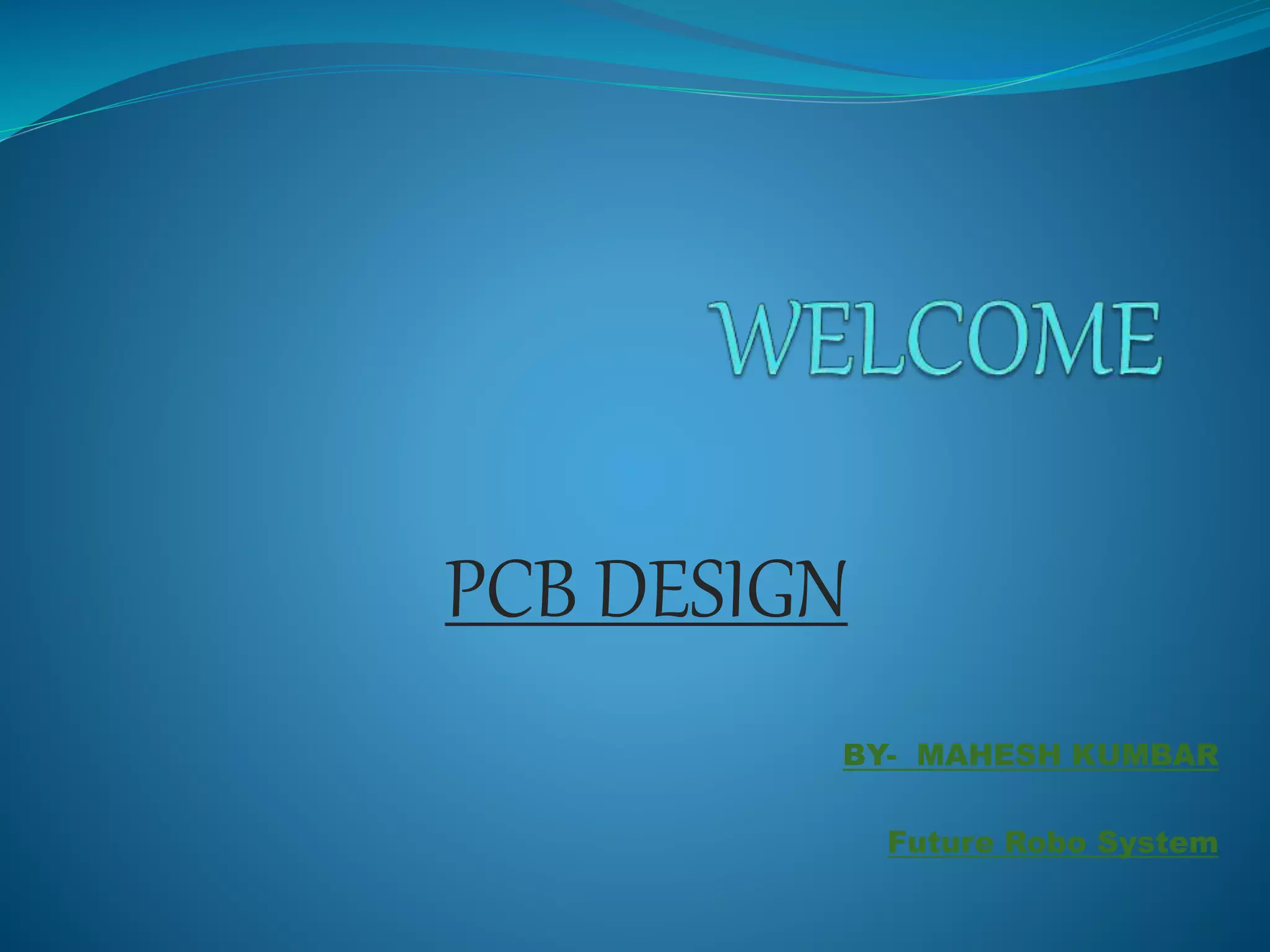 This document provides an overview of printed circuit board (PCB) design. It defines a PCB as a board that mechanically supports and electrically connects electronic components using conductive tracks and pads. The document describes the different types of PCBs, including single-sided, double-sided, and multi-layer boards. It outlines the key steps in PCB design, including designing the circuit, placing components, routing wires, and manufacturing. Common PCB design software and features like schematic capture and component placement are also summarized.