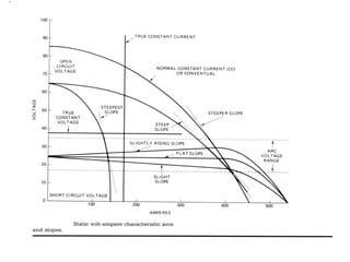 #51 A subtle electrical consideration associated with operating a welding arc has to do with the electrical stability of the operating point. This is not much of a factor with common electrical loads, but the nonlinear characteristic of the welding arc makes it a not insignificant factor in design of electrical systems for operating arcs.