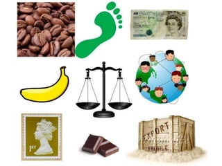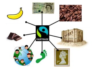 A document showed images for 10 seconds to memorize, then asked the user to write down as many as they could remember. It then showed images of items like coffee, money, and stamps that were linked by Fair Trade, explaining that Fair Trade aims to help producers in developing countries get a better deal.
