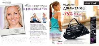 Документ представляет программу подписки на продукцию вэлнэс, предлагая клиентам возможность оформлять заказы и получать бонусные продукты. Также содержится информация о здоровье, снижении веса и полезных привычках в питании с рекомендациями по использованию коктейлей и супов в качестве сбалансированных приемов пищи. В нём описаны преимущества программ, созданных для поддержания энергии и достижения индивидуальных целей по снижению веса.