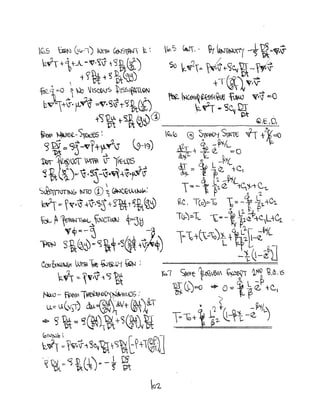 1. The document contains solutions to problems from a textbook on fundamentals of momentum, heat, and mass transfer. It provides step-by-step working and calculations for problems related to concepts like fluid dynamics, thermodynamics, heat transfer etc.