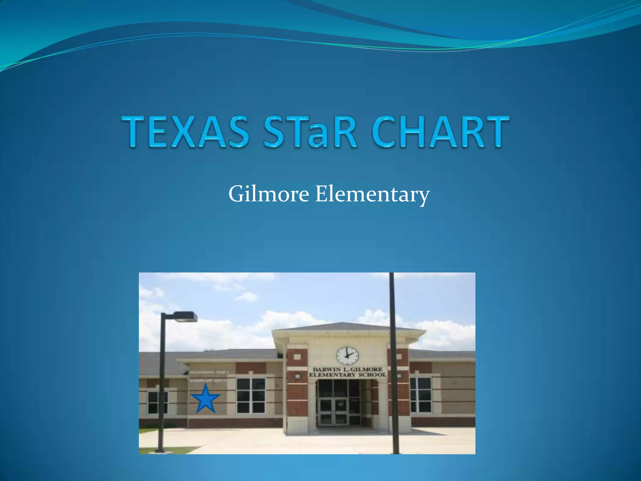 The STaR Chart is a tool used by Gilmore Elementary to evaluate their progress in four key technology areas: teaching and learning, educator preparation, leadership and infrastructure. Campus data from 2008-2009 showed developing progress in the first three areas and advanced progress in infrastructure. Compared to state data, Gilmore was on par in most areas except leadership, where the state was advanced. The summary identifies infrastructure as a campus strength and the first three areas as needs for improvement. The document recommends continuing education, motivating technology use, creativity and risk-taking to enhance progress.