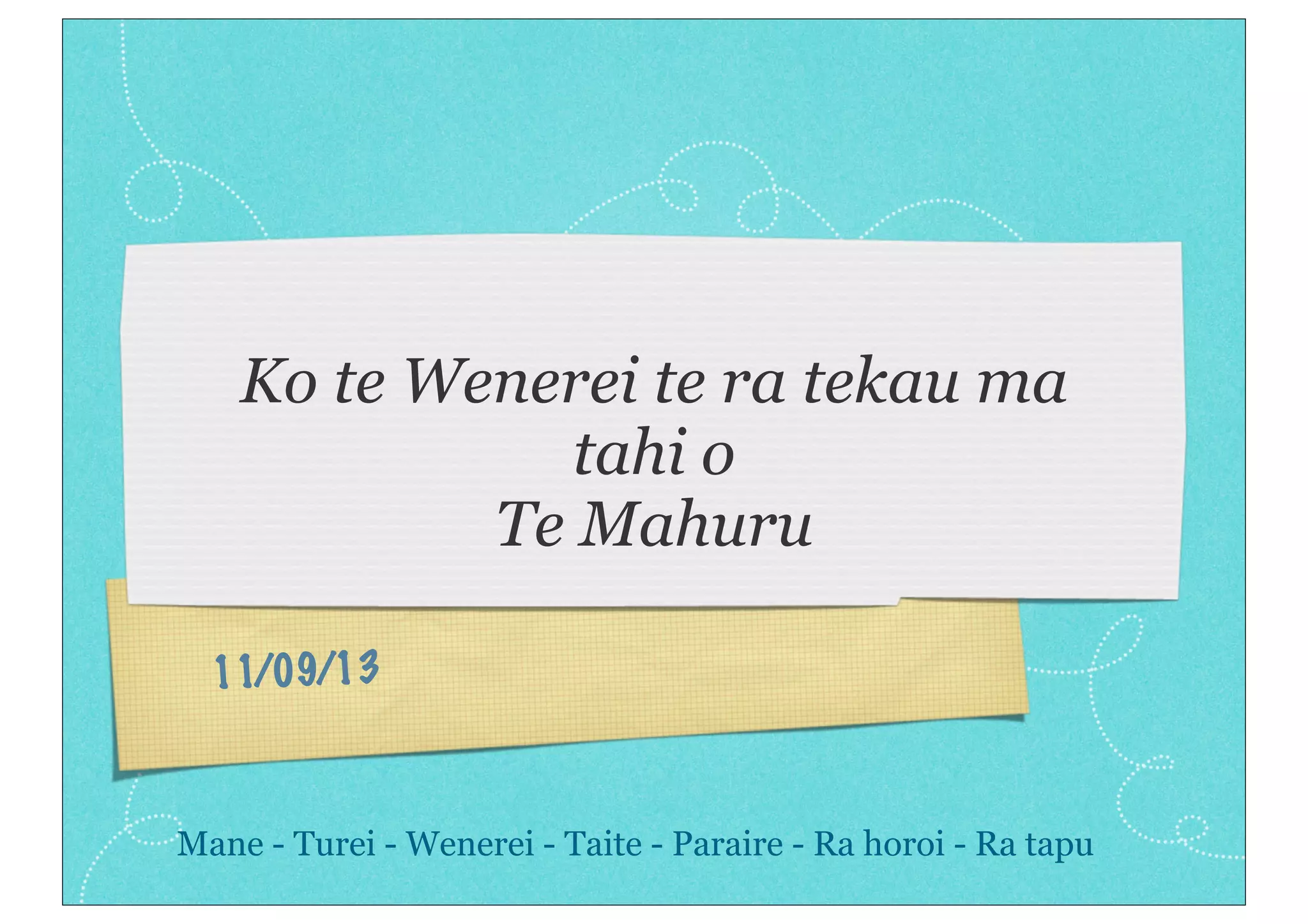 1) The document provides information from a Maori language lesson, including pronunciation practice of vowels, vocabulary words, and a riddle ("wa wero").