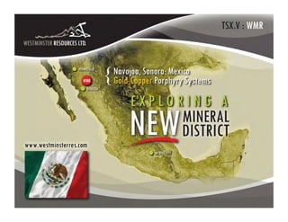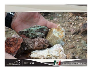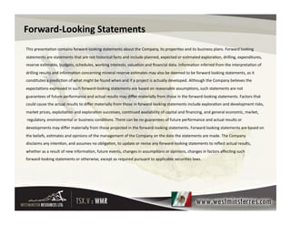 The document discusses forward-looking statements made by a mining company about its properties and business plans. It states that forward-looking statements are not historical facts and involve planned activities like drilling and budgets that may differ from actual future results due to risks in exploration, commodity prices, financing and general economic conditions. Actual results may differ materially from projections. Forward-looking statements are based on management's beliefs on the date made and may not be updated except as required by law.