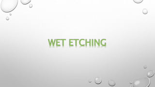 1. Wet etching is a material removal process that uses liquid chemicals or etchants to remove materials from a wafer through oxidation and dissolving of the oxidized material.