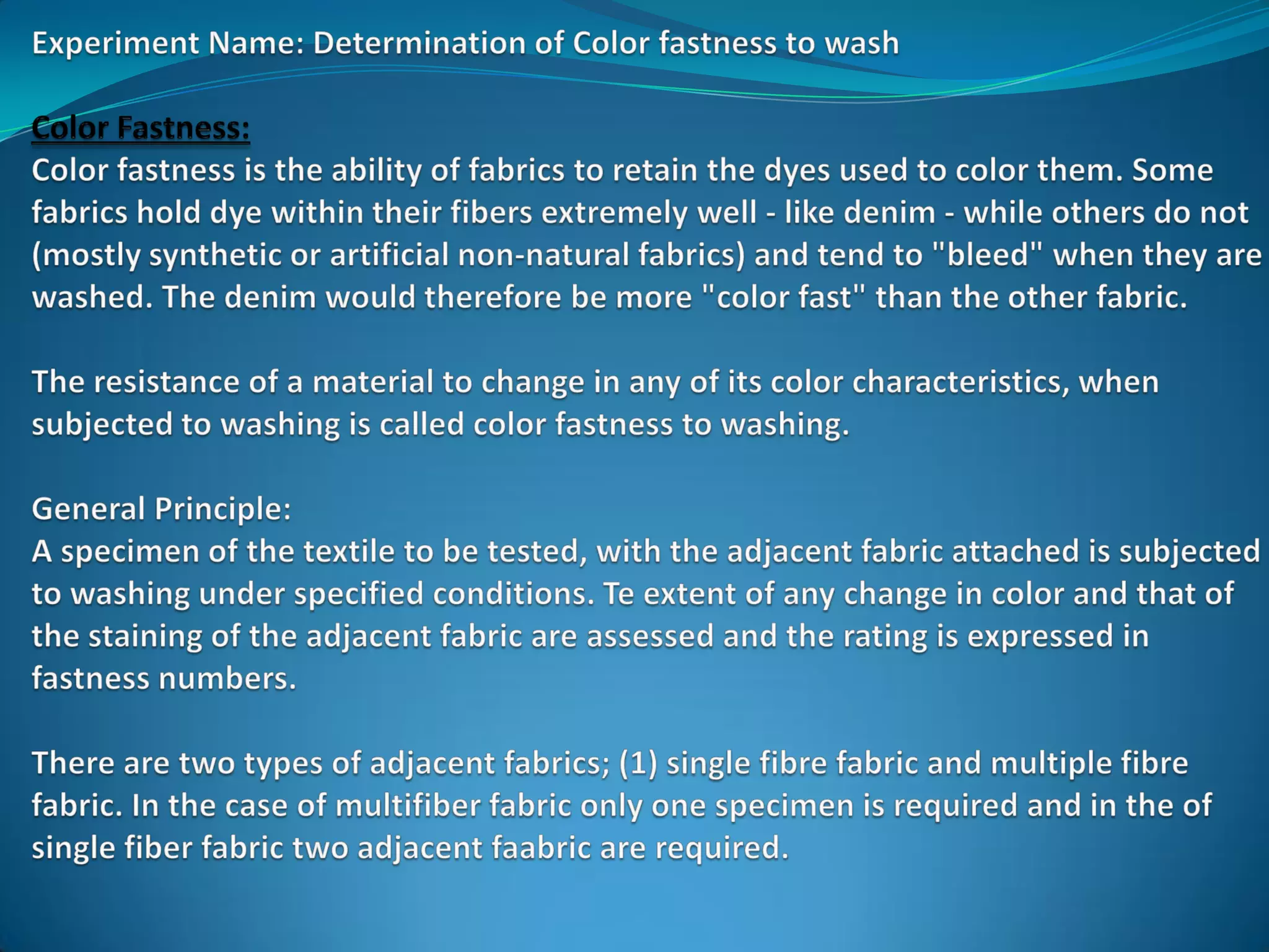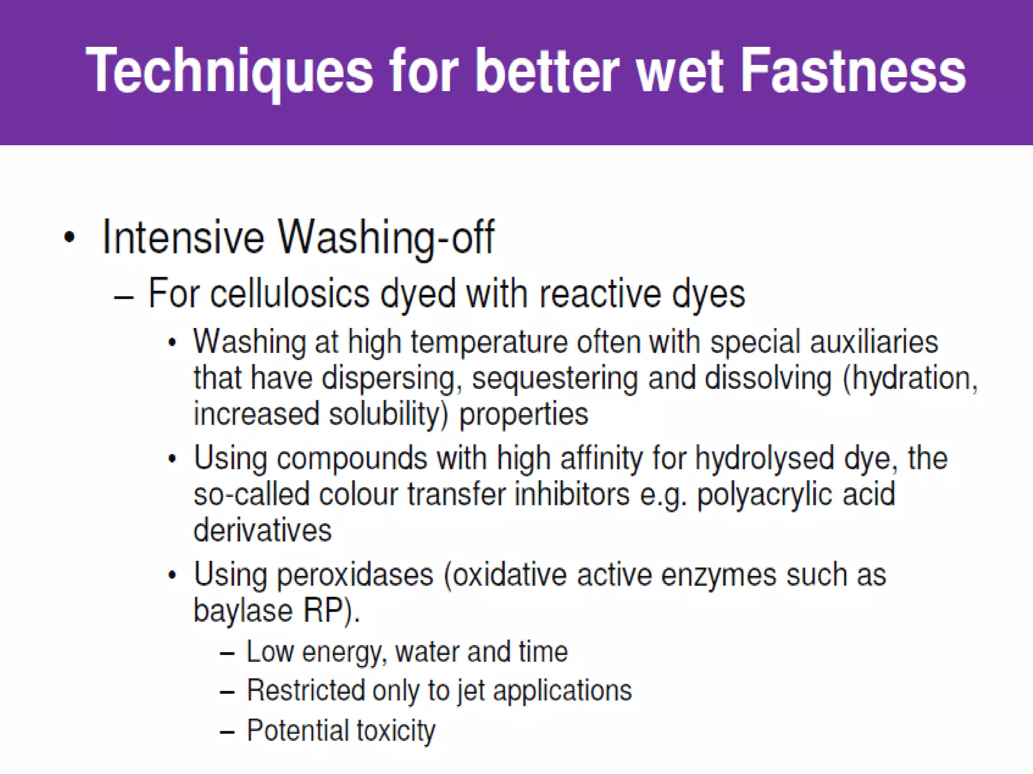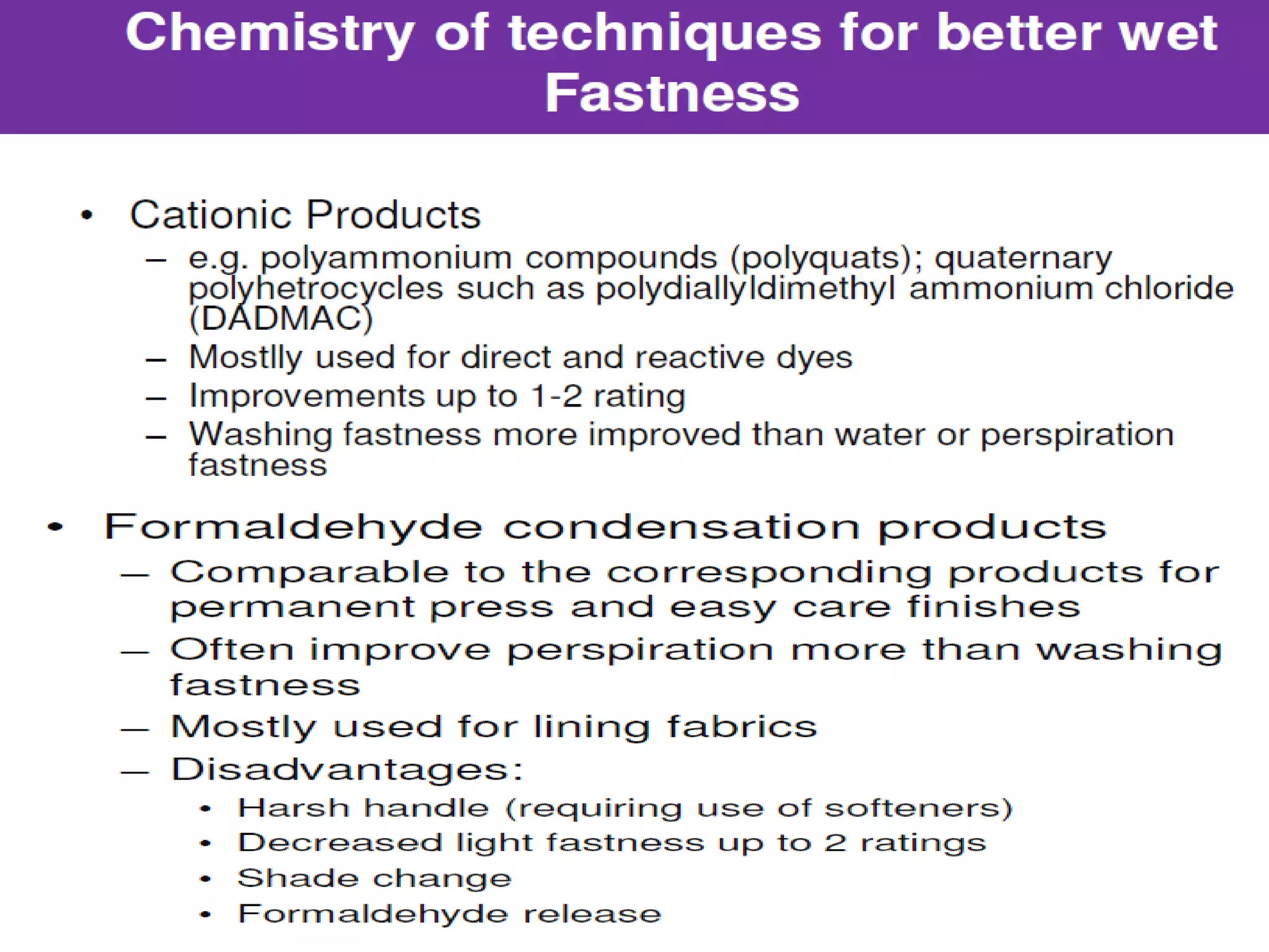 The document discusses various wet testing experiments related to color fastness in textile materials, including tests for perspiration, washing, and rubbing. It emphasizes the importance of color fastness in meeting buyer demands and outlines factors impacting fastness properties, such as fiber type and dye compatibility. The document also mentions methods for improvement, including plasma treatment to enhance color strength and fastness of dyed fabrics.