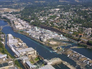 This document discusses plans for restoring habitat and improving public access at Willamette Falls Legacy Project. It outlines goals and key elements for restoring riparian habitat, improving native fish habitat, and enhancing water quality. Interim stormwater management and flood assessment are also addressed. Next steps include developing a Willamette River Walk for public access and viewing the falls, using demonstration plans that were adopted by the local city council. The overall goal is to restore the ecological and cultural integrity of Willamette Falls while improving recreation opportunities.