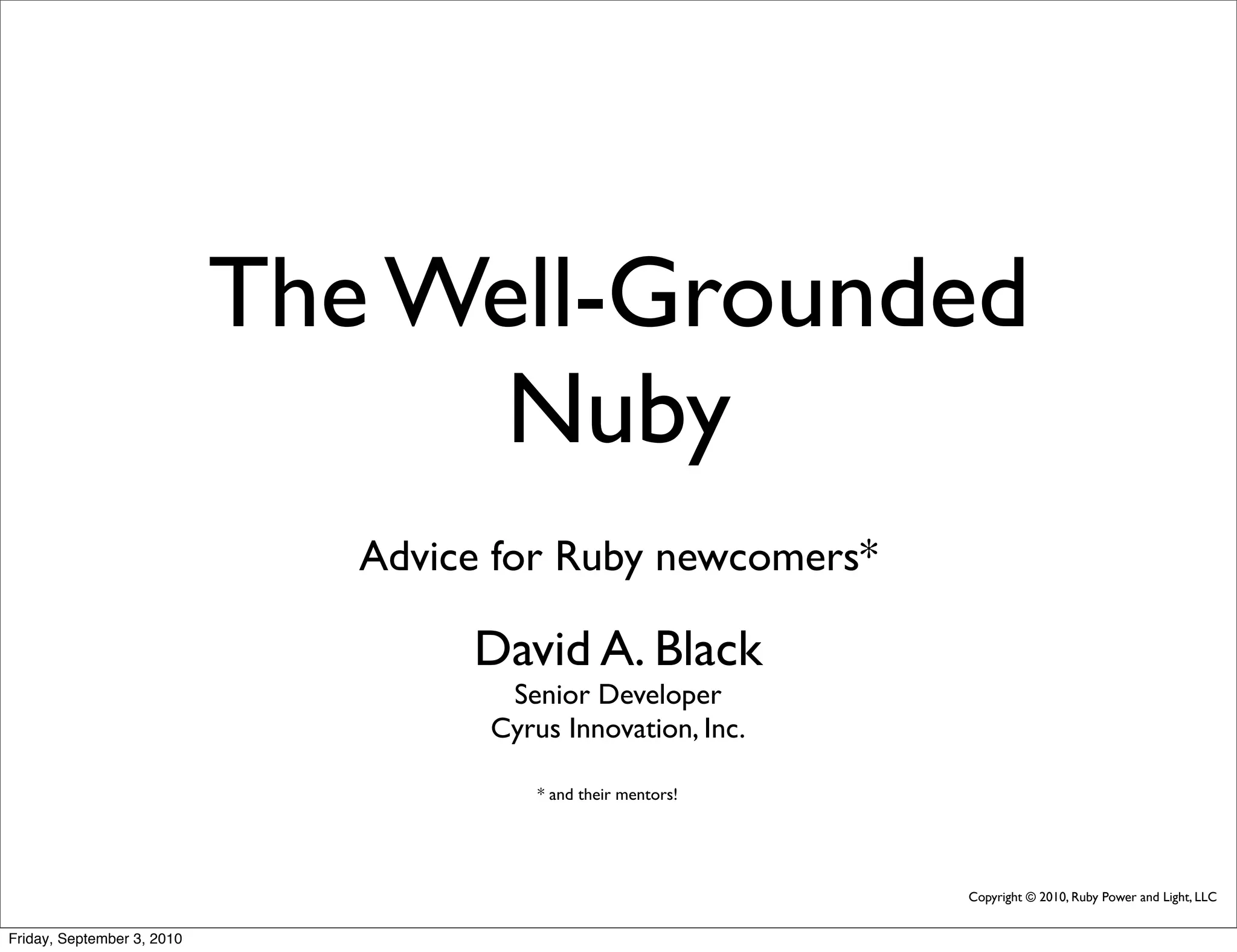This document provides essential guidance for Ruby newcomers and their mentors, focusing on common points of confusion and methodologies for navigating Ruby code. It highlights key concepts such as message sending, object evaluation, the role of classes and modules, and the significance of self within Ruby programming. The presentation aims to enhance comprehension and coding abilities in Ruby through interactive examples and practical demonstrations.