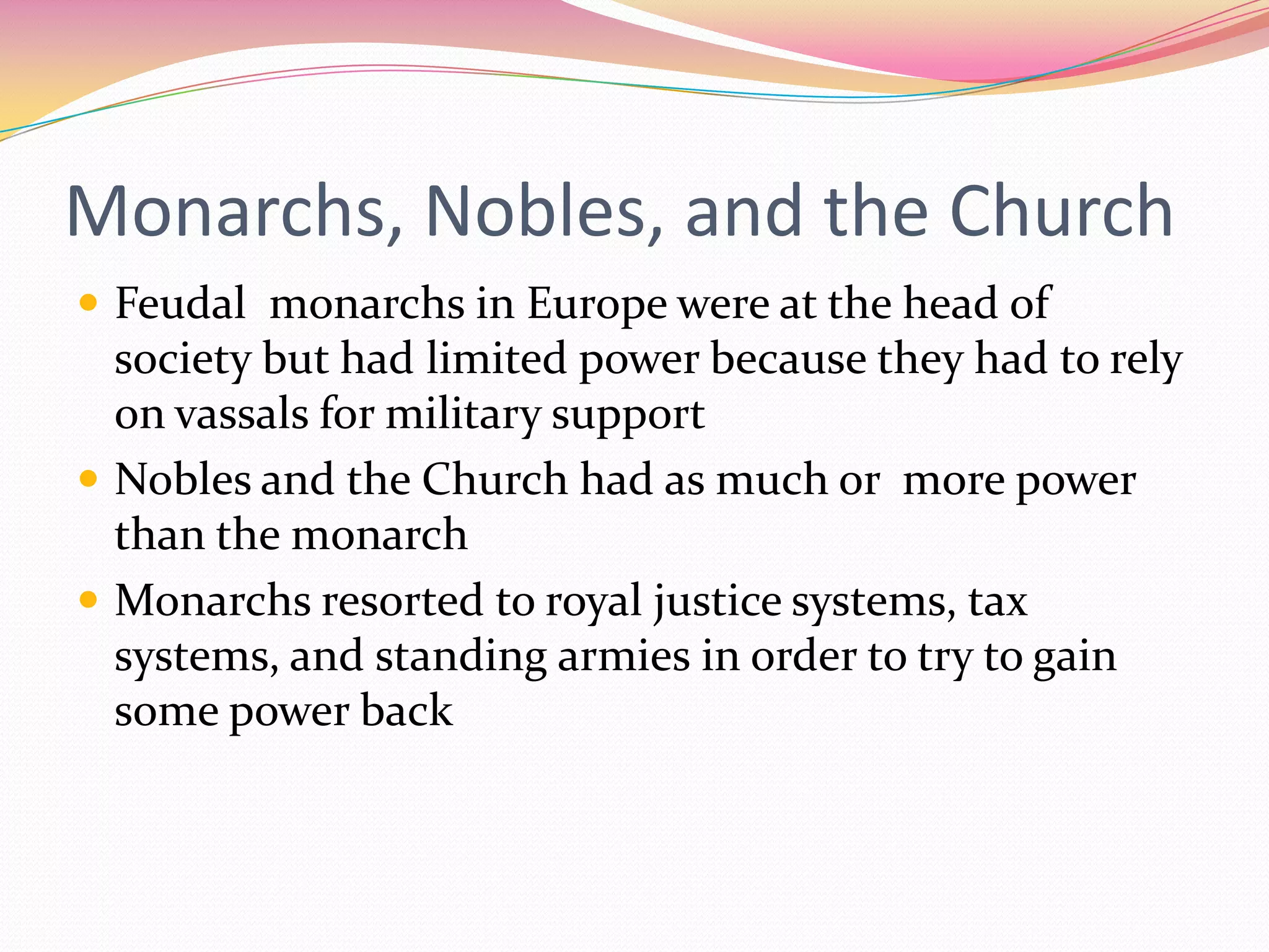 Feudal monarchs in Europe had limited power due to their reliance on vassals for military support, while nobles and the Church often had as much or more authority. In England, William the Conqueror strengthened royal power after his victory at the Battle of Hastings in 1066, when he became the first Norman king. His successor, William II, had a census conducted in 1086 known as the Domesday Book, which helped him and later English rulers establish efficient tax collection. Under King Henry II in the 12th century, England developed a common law system and early jury trials. In France, the Capetian dynasty established strong centralized royal authority over three centuries starting with Hugh Capet in 987.