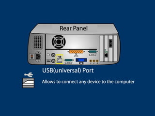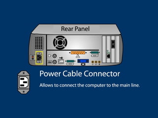 This document provides an overview of computers, their components, and how they work. It discusses that a computer is a machine that processes data according to programmed instructions and is composed of hardware and software. It then describes various computer parts like the monitor, CPU, keyboard, mouse, disks, memory, and motherboard. It also explains operating systems, applications, and multimedia software, as well as file formats for images, sound, and video. Finally, it discusses web browsers, search engines, and tools like Google Earth.