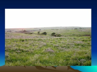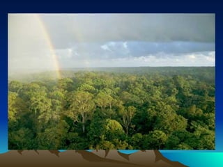 The document divides the biosphere into six major biomes: tundra, coniferous forest, deciduous forest, tropical rainforest, grasslands, and desert. Each biome has a distinct climate defined by factors like temperature and rainfall that influence the soil and types of plants and animals that can survive there. The biomes range from the bitterly cold tundra to the very warm and moist tropical rainforest.
