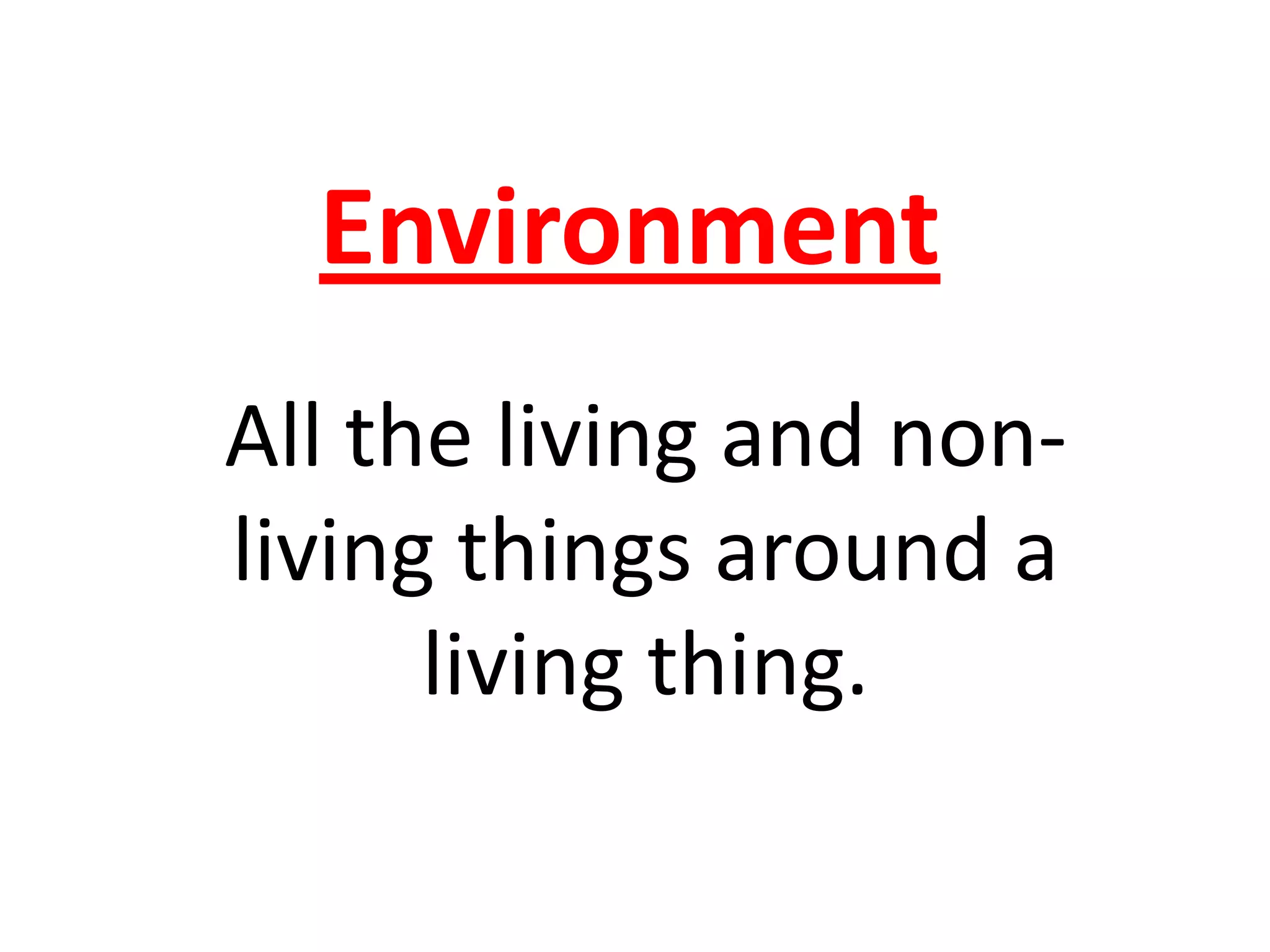 Ecosystems are made up of all the living and non-living things that interact in an environment. Living things live in specific environments because they can find food, water, and shelter. An ecosystem consists of organisms, populations, and communities. Organisms are individual animals or plants, populations are groups of the same kind of organism in one place, and communities are all the populations living together in an ecosystem.