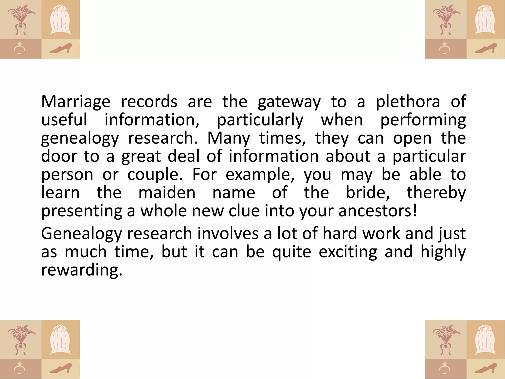Marriage records are essential for genealogy research, providing valuable information such as names, ages, and parents' details of individuals. They can be found through various sources, including courthouses and online databases, but knowing the approximate marriage date and location helps narrow down the search. Utilizing reputable websites can simplify the process of obtaining comprehensive marriage records.