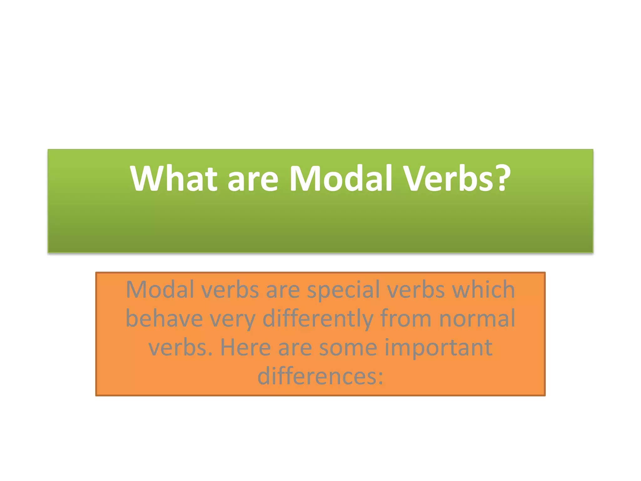 Modal verbs are special verbs that behave differently than regular verbs. Some key differences are that modal verbs do not take "-s" in the third person and use "not" to form negatives. Common modal verbs include can, could, may, might, must, ought to, shall, should, will, and would. Modal verbs are used to express attitudes like obligation, permission, possibility, and logical deduction. Their meaning depends on the context, and one modal verb can have multiple meanings.