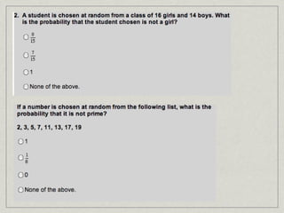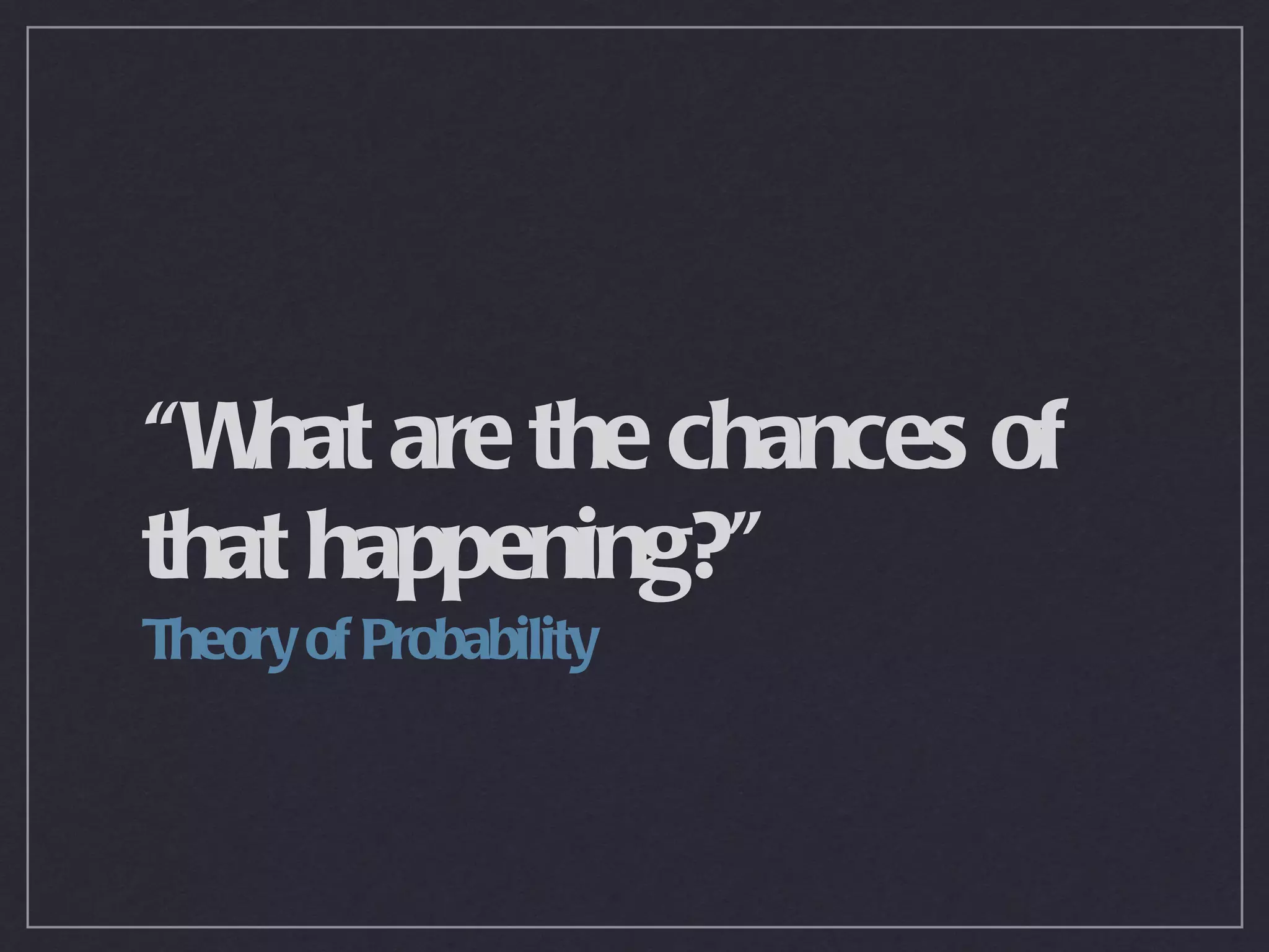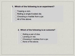 The document discusses probability theory and its applications. It begins with everyday examples of probability, then describes the origins of probability theory through the correspondence of Blaise Pascal and Pierre de Fermat. It defines key probability concepts and terms. It provides examples of calculating probabilities of events, including conditional probabilities and combined events. It discusses using relative frequency to estimate probabilities experimentally. Careers that apply probability theory are also listed.