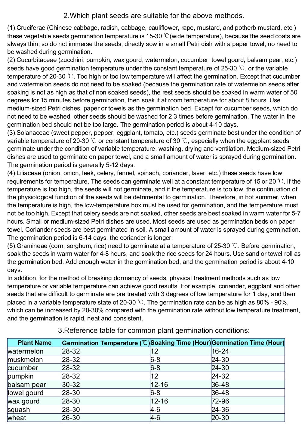 We had introduced the common mothods for seed germination and also had listed which plant seeds are suitable for the above methods.Also we have shown a list of common seed germination condition by germination temperature,time and soaking time.Also welcome to tell us your own idea about seed germination.