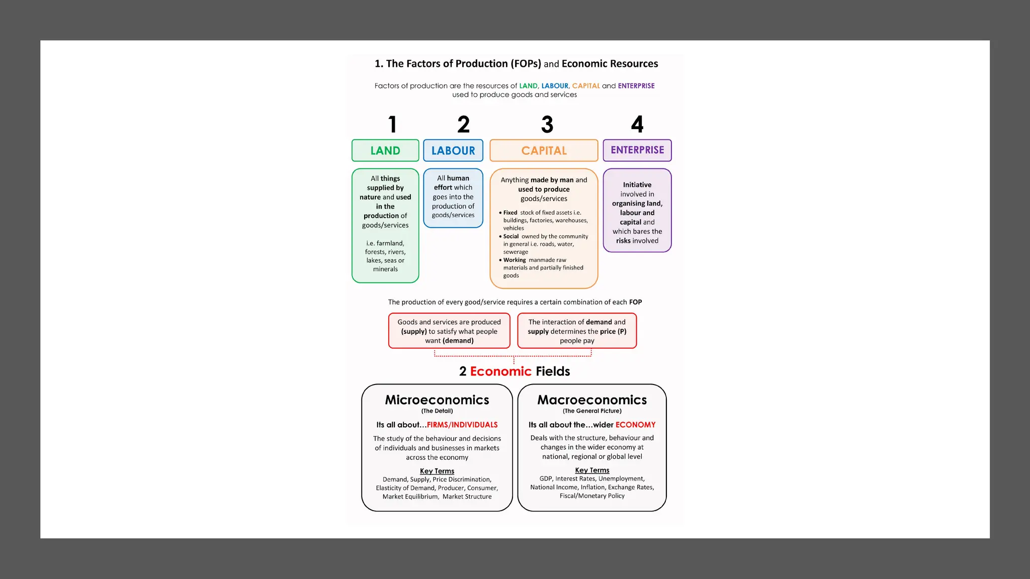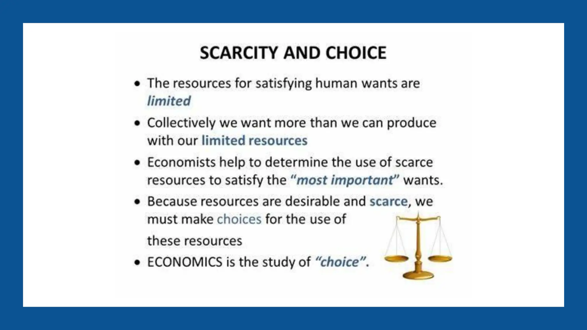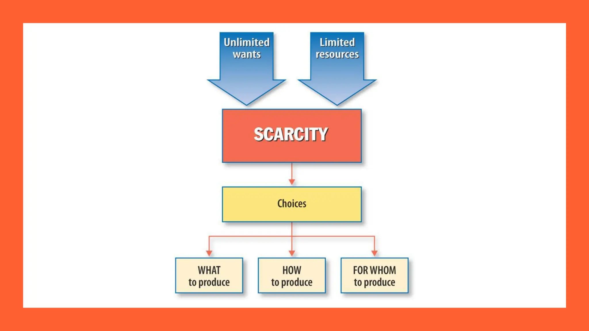 • Scarcity: Limited amounts of goods and services are available to meet unlimited wants.