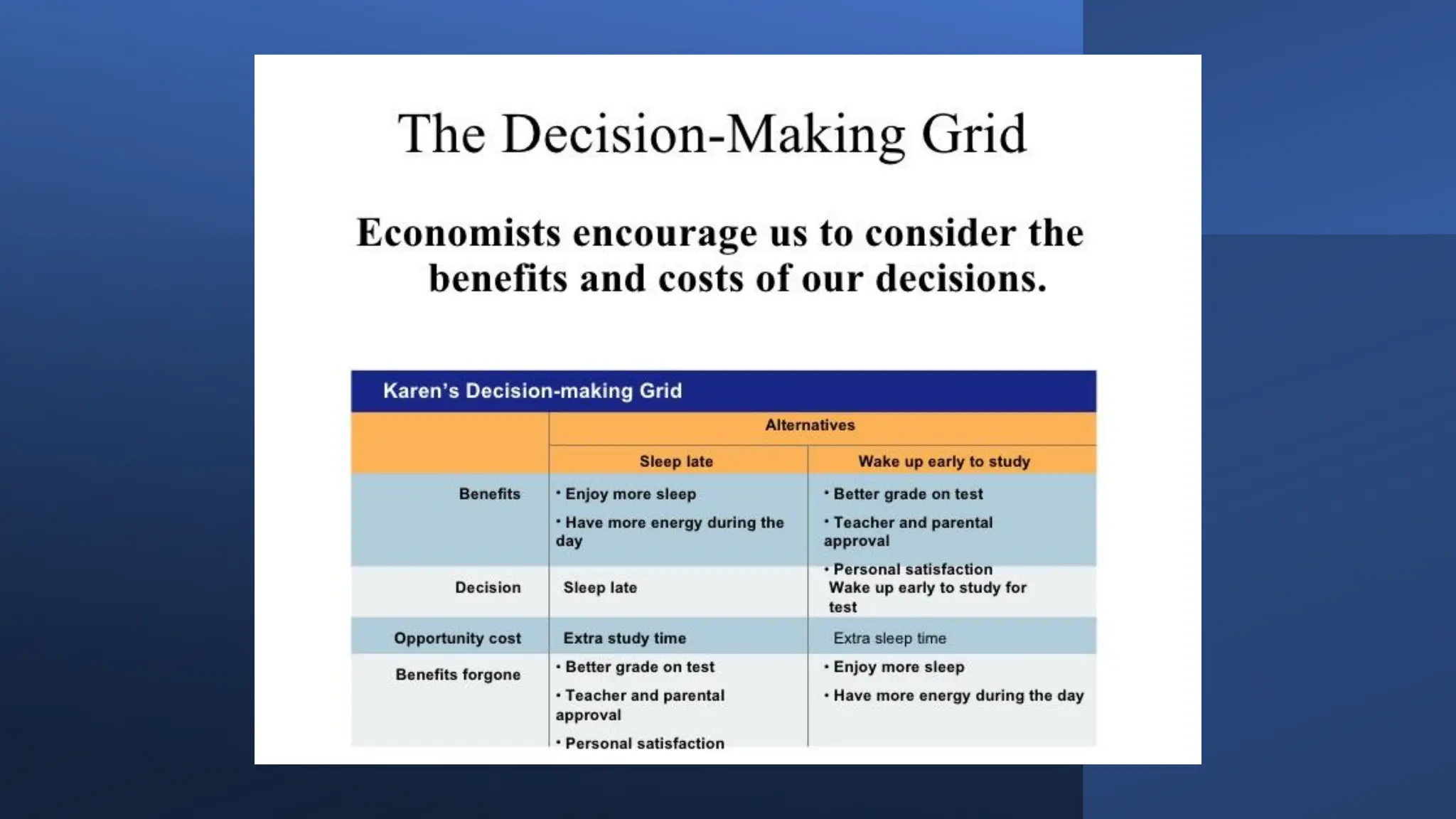 •Being aware of trade-offs and opportunity costs is vital to the making