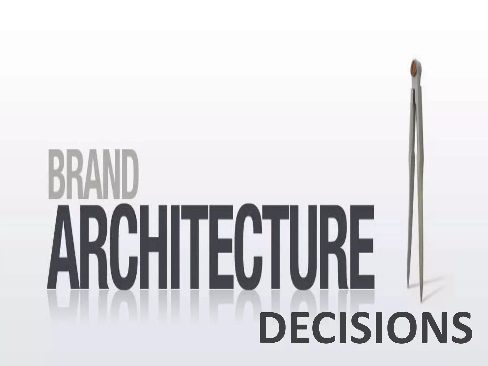 Brand architecture defines the structure of brands within an organization's identity and establishes hierarchies. There are several branding decisions an organization can make including using individual brand names, a family of brand names, or an umbrella corporate brand name. Organizations can also decide whether to extend their brands into new categories or introduce new products within existing categories through line or category extensions.