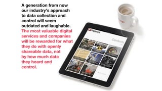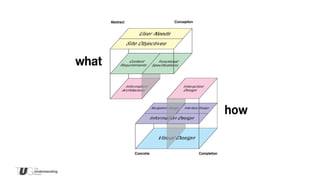 The document discusses the evolution of information architecture and the unique approach taken by The Understanding Group (TUG) in transitioning towards a user-centered understanding business. It emphasizes the distinction between architecture and design while advocating for a focus on meaning and user experience. Key insights from industry figures highlight the ambivalence surrounding the profession of information architecture and call for a broader understanding of its role in different contexts.