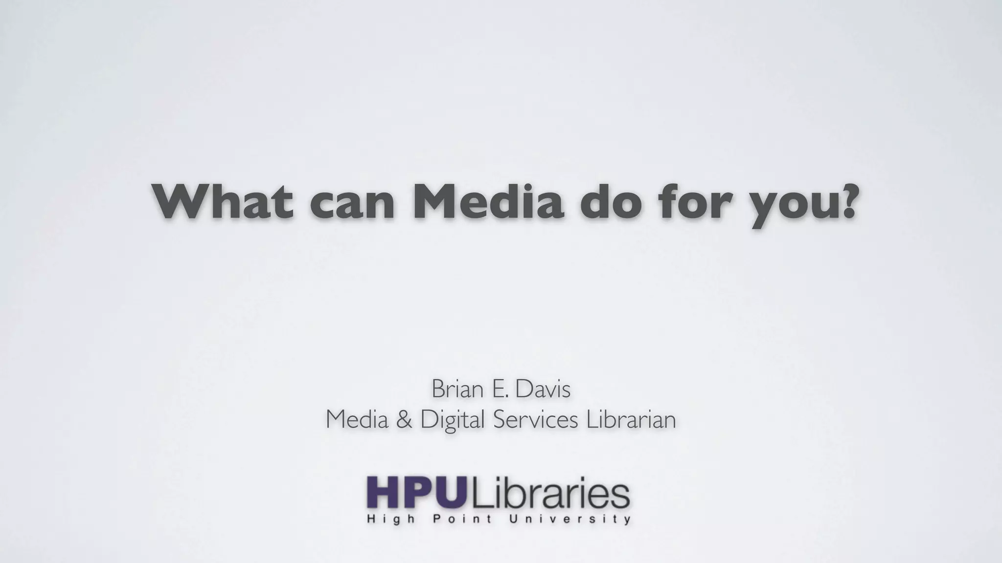 The document describes the services provided by a university media services department, including an instruction lab with software like Photoshop and video editing programs, a large video collection, equipment lending including cameras and audio equipment, printing services, audiovisual spaces for viewing and collaboration, web development, video production, and an archives collection. It provides examples of projects and promotes the department's services.