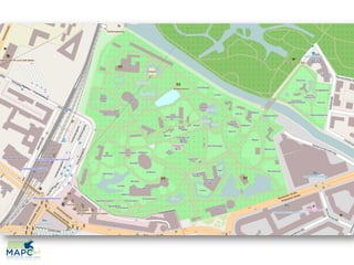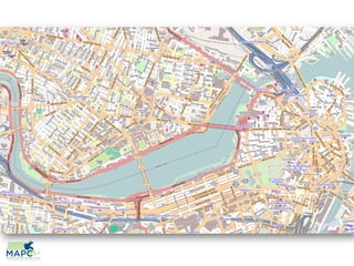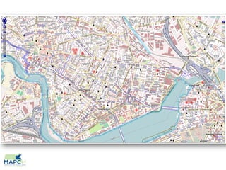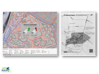 The document discusses the potential benefits of OpenStreetMap for towns, focusing on how local knowledge can be collected and shared through community engagement. It highlights various tools and platforms like mobile map APIs and public data distribution that can enhance urban planning and tourism. Additionally, it emphasizes the role of GIS professionals and town administration in harnessing this data for smarter city design.