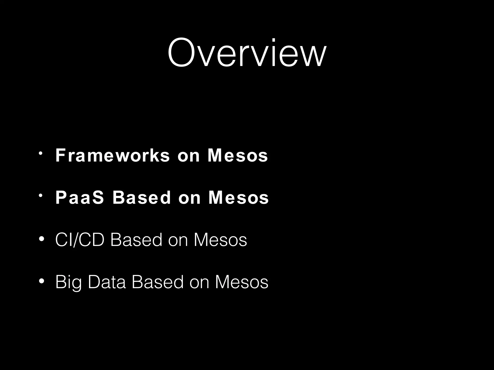2) Building platform as a service (PaaS) using Mesos, Marathon, Docker, Jenkins, Gitlab/GitHub, and metrics for monitoring.