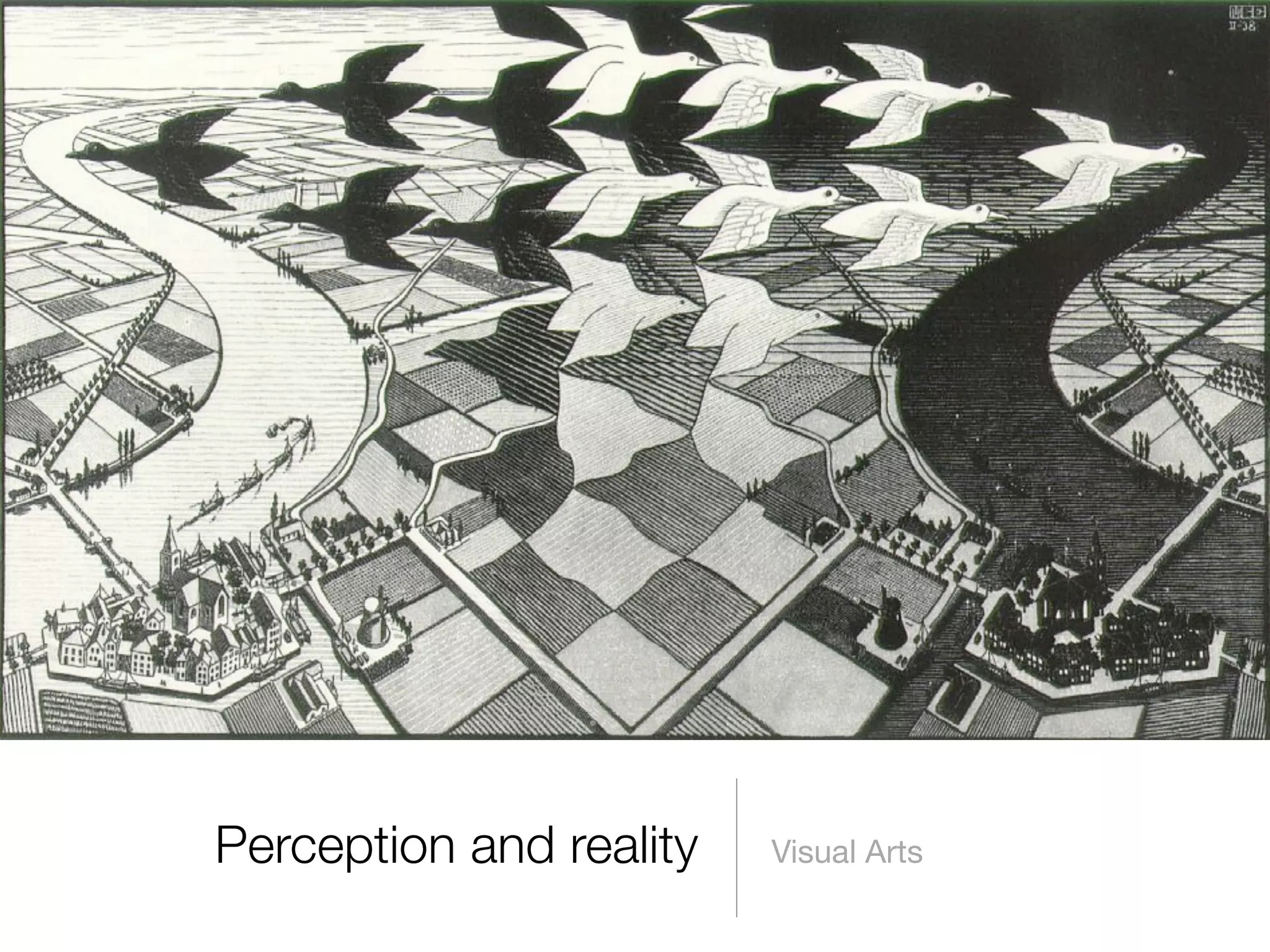 This document discusses several laws of visual perception including figure and background, closure, proximity, similarity, good continuity, contrast, and camouflage. It also mentions different functions of images such as the aesthetic and expressive and discusses perception and reality in visual arts.
