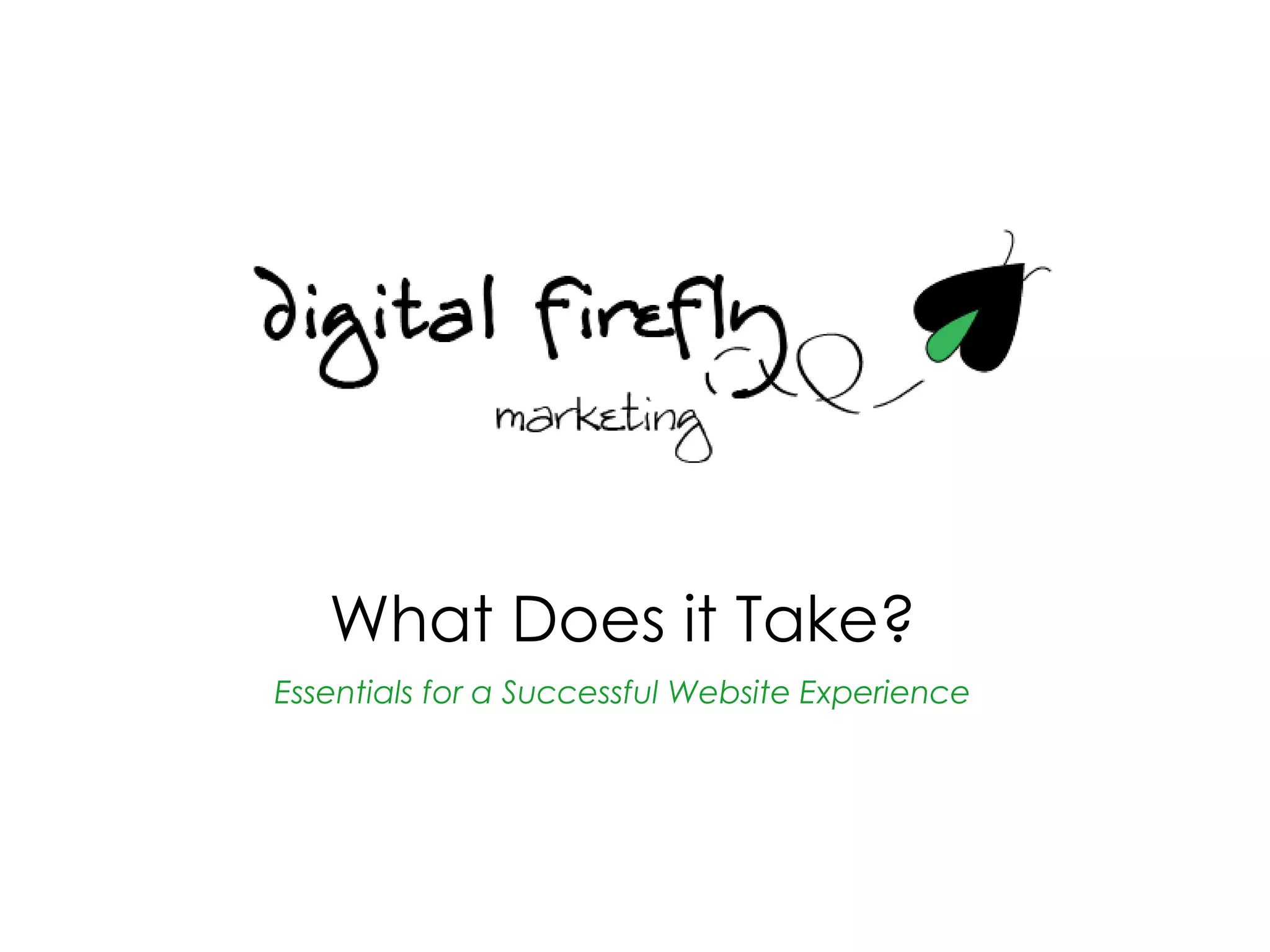 The document discusses the essentials for a successful website experience. It emphasizes using a holistic approach that incorporates search engine optimization, content marketing, social media, and reputation management. Specifically, it stresses the importance of building a strong website foundation, creating engaging content on a regular basis, being active on key social media platforms like Facebook and Twitter, and monitoring your online brand reputation. The overall message is that maximizing website success requires an integrated strategy across these different areas.