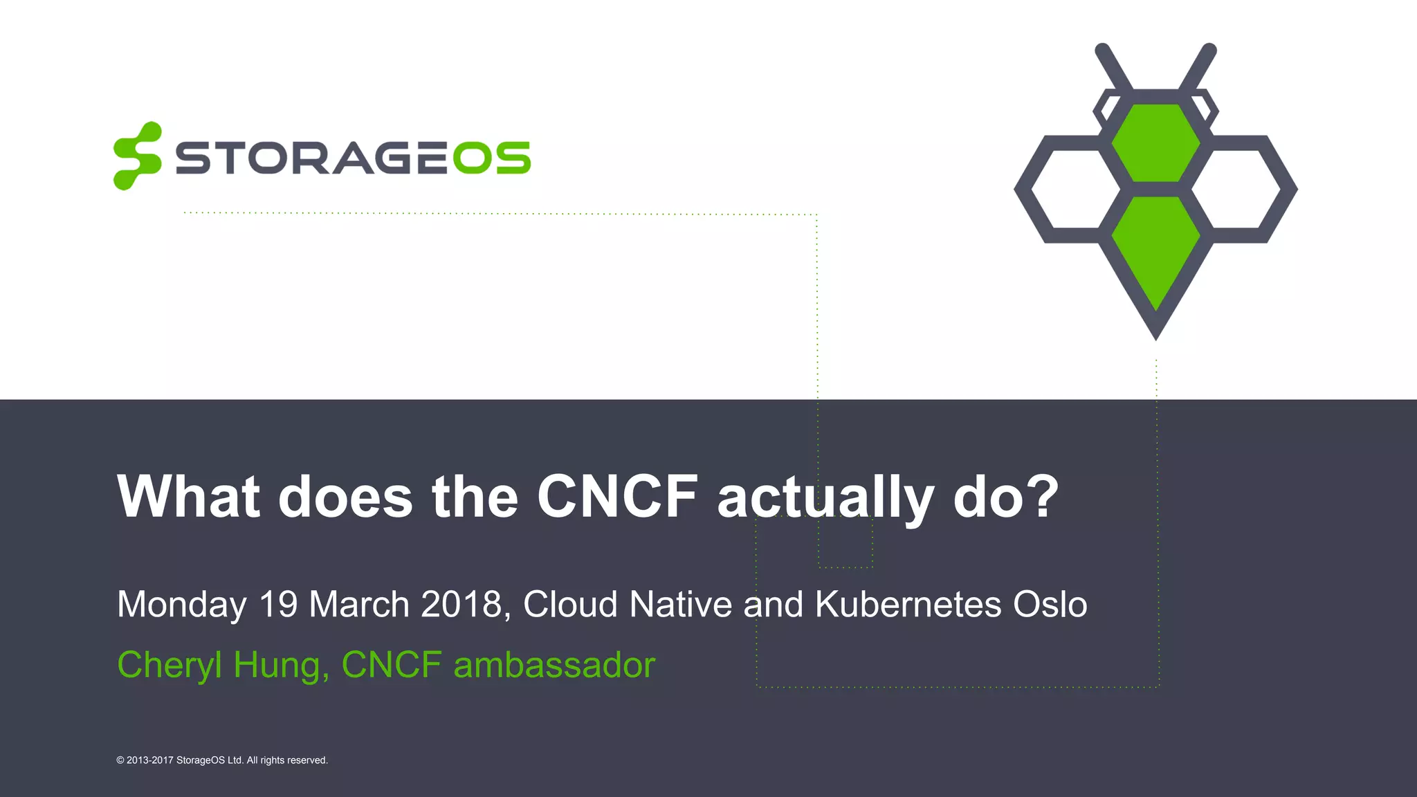 The CNCF hosts open source cloud native projects like Kubernetes and promotes their adoption. It oversees projects at different stages - from inception where it owns trademarks, to incubating where there are at least 3 independent users, to graduated where committers come from multiple organizations and governance is public. The CNCF is a non-profit housed at the Linux Foundation that advances containers, microservices, and orchestration technologies which together define cloud native applications.