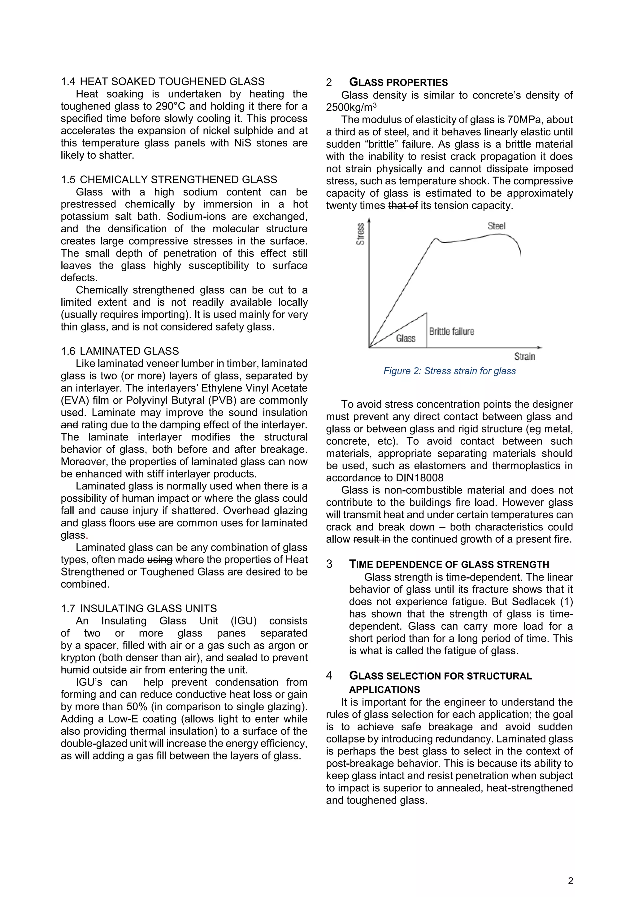 3. Key properties of glass are summarized, such as its brittle nature, linear elastic behavior, and time-dependent strength. Guidelines for selecting different glass types for structural applications like sloped glazing, balustrades, pool fences, and glass floors are provided.