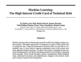 The document discusses key concepts in machine learning that every software engineer should understand, emphasizing the transformation of applications through technologies like visual recognition and the challenges faced with non-modularity, lack of tooling, and privacy concerns. It contrasts traditional software with machine learning, highlighting issues such as nonstationarity and feedback loops. The importance of scalable oversight and safe exploration in developing machine learning systems is also mentioned.