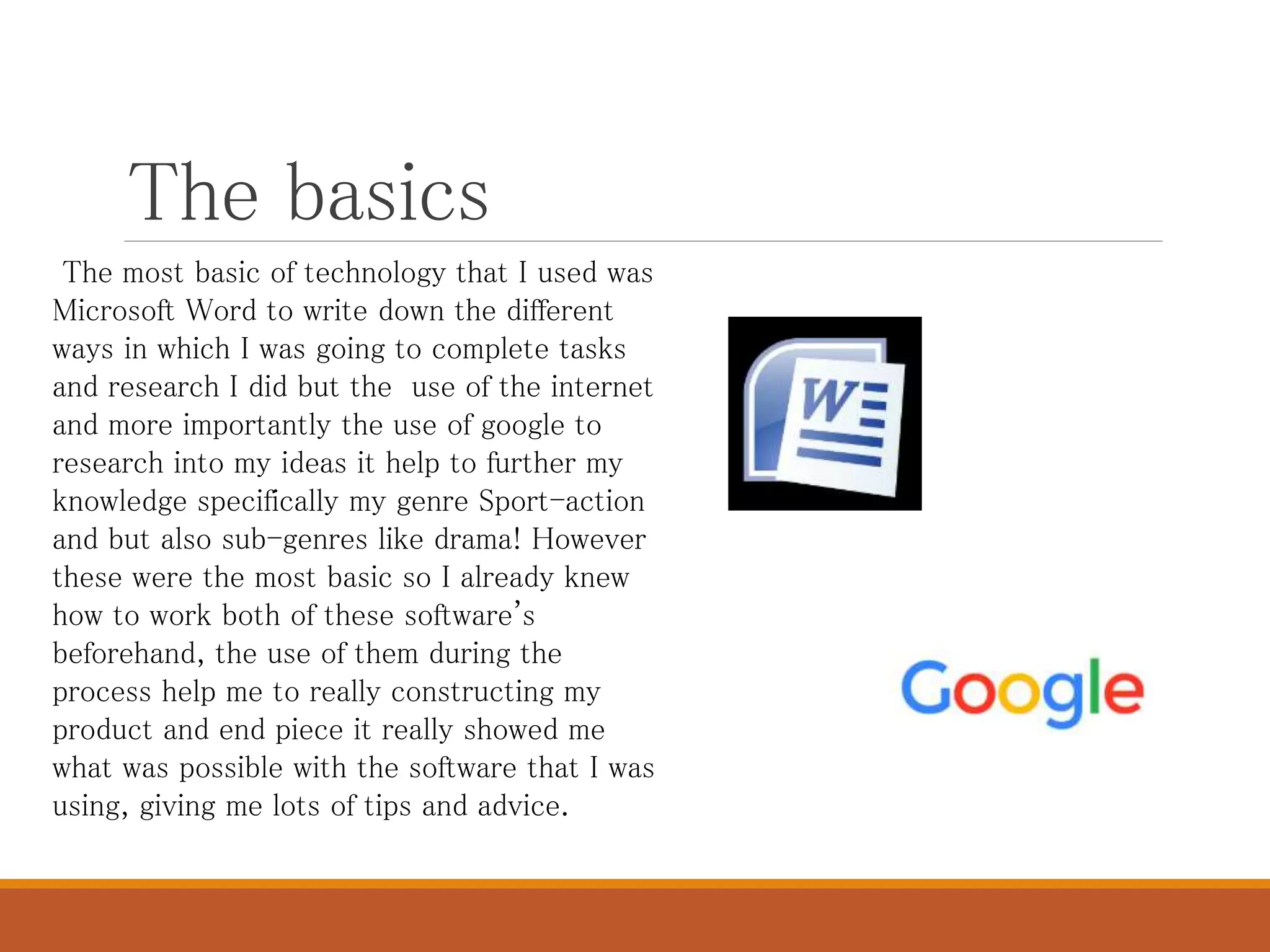1) The document discusses the various technologies the author learned and used during the process of constructing a media product, including Microsoft Word, Google, Blogger, SlideShare, Prezi, SurveyMonkey, a Sony Handycam, Final Cut Pro, Epidemic Sound, and a memory stick.