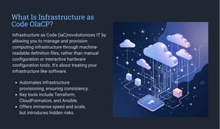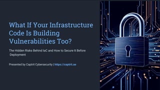 This presentation explores the hidden security risks in Infrastructure as Code (IaC) and how misconfigurations can expose entire cloud environments. Learn how Captrit Cybersecurity identifies, audits, and secures IaC to prevent vulnerabilities before deployment. Perfect for businesses scaling with DevOps tools like Terraform or Ansible.