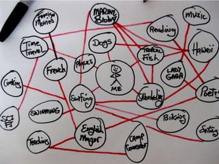 This document provides instructions for reflecting on life experiences and interests in order to discover themes and skills that can help in career and major selection. The reader is asked to make a map by writing brief descriptions of memorable events, activities, hobbies, and influential people from their life. They are then instructed to analyze their map by connecting related ideas and identifying common themes in their experiences. Finally, the reader is told to discuss their top 5 skills/strengths/themes with a partner and consider how these insights can inform their choice of career or major.