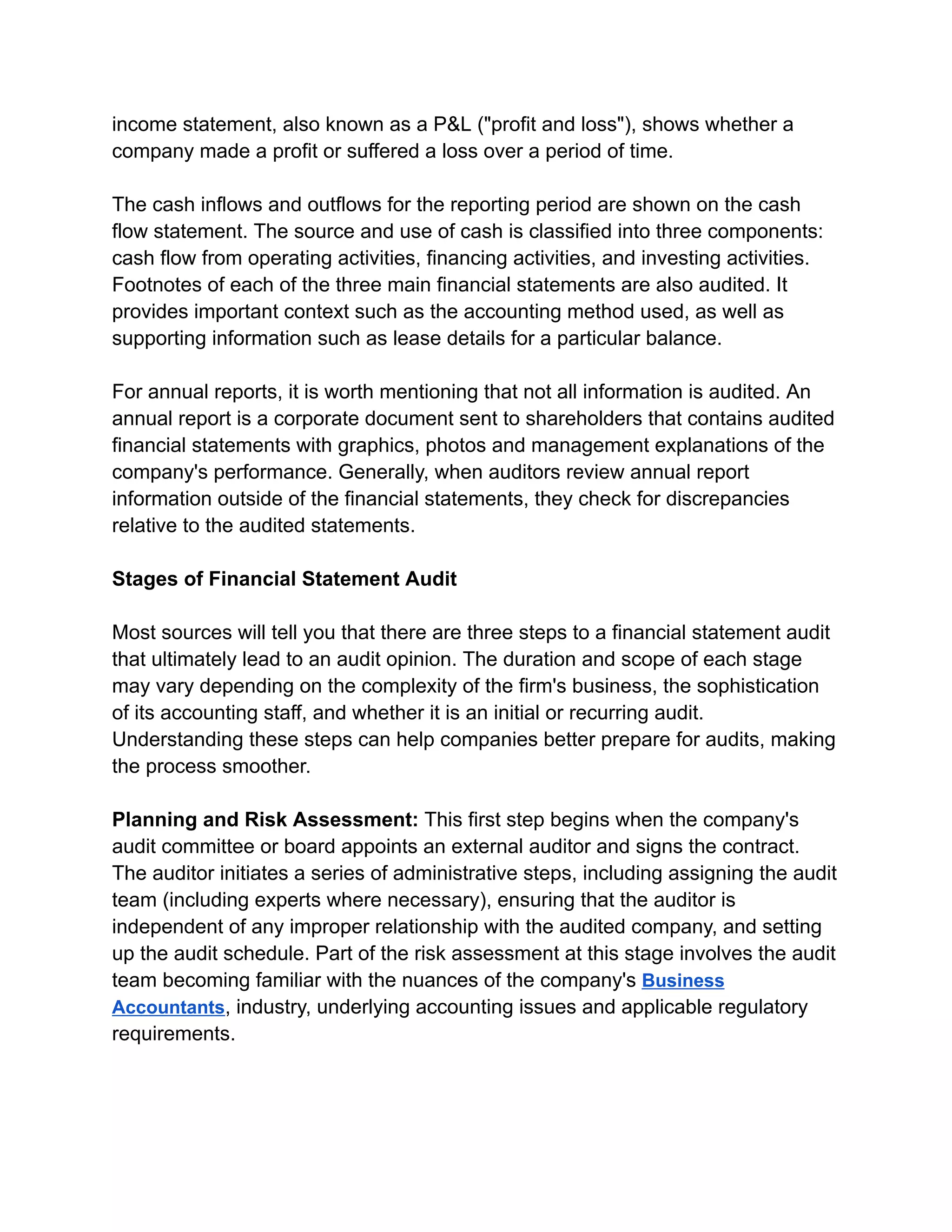 A financial statement audit evaluates whether a company's financial statements accurately represent its operations and comply with generally accepted accounting principles (GAAP). The audit process includes three main steps: planning and risk assessment, testing internal controls, and substantive testing, and concludes with the auditor's opinion. The resulting audit findings are essential for external stakeholders like investors and creditors who rely on these statements for financial decisions.