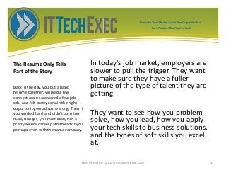 The resume isn’t dead, but it’s ailing. There are so many more tools at your disposal today, from project highlights options to innovation pages to LinkedIn profiles to online bios. In the tech job market, in particular, it is time to time portfolio, more than just "resume."