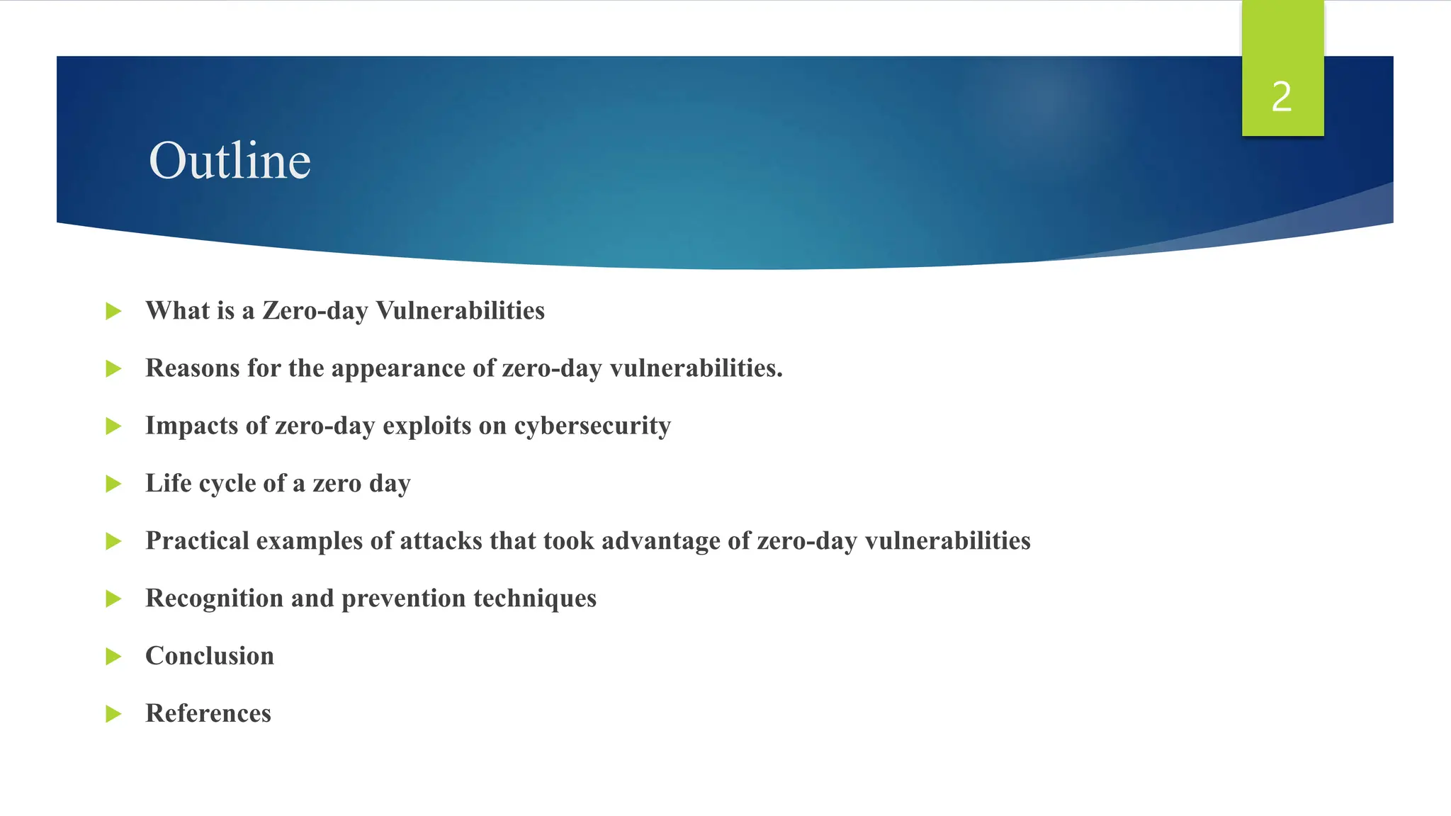 This document discusses zero-day vulnerabilities, which are unpatched security flaws that can be exploited by attackers before developers become aware of them. It outlines the reasons these vulnerabilities appear, their impacts on cybersecurity, examples of notable attacks, and techniques for recognition and prevention. The conclusion highlights the importance of understanding zero-day vulnerabilities for enhancing data security and encourages further research and awareness.