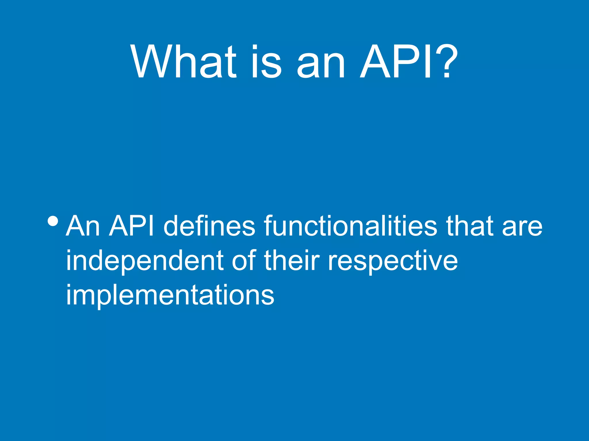 An API is a set of routines, protocols, and tools that allow software applications to communicate with each other. It defines the functionality that is independent of implementation. An API expresses the operations, inputs, outputs, and types of a software component. It allows creation of applications that can access features or data from an operating system, application, or other service. An API acts as an intermediary that allows two applications to communicate, delivering requests from one app to a provider and returning the response.