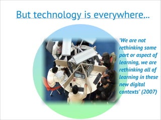 The document explores the concept of blended learning, highlighting its integration of traditional classroom methods with online learning, as technology permeates educational environments. It emphasizes the evolving roles of learners and educators, the importance of digital literacy, and the need for new practices in both learning and teaching to adapt to digital contexts. Additionally, it discusses the impacts of technology on curriculum, career paths, and the experiences of students in the learning process.