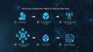 Blockchain technology allows transactions to be grouped into blocks and recorded in a ledger. Each block is cryptographically linked, making the record permanent and unalterable. This permits untrusting parties to co-create a shared record without relying on a central authority. Blockchains use cryptographic keys, peer-to-peer networks, and a shared ledger to securely transmit unique instances of value in a transparent manner that can be accessed by various servers. There are four basic types of blockchain: private, public, federated, and hybrid. Blockchain provides advantages like improved accuracy, reduced costs, decentralization, transparency, and security of transactions. However, it also faces challenges like needing high-performance and not replacing certain solutions like databases