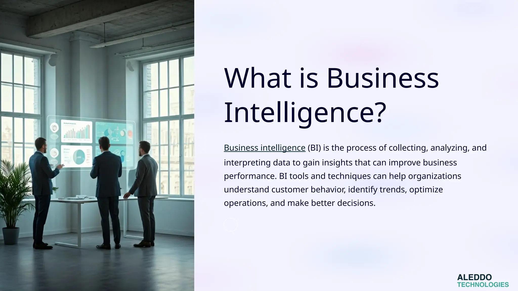 Business Intelligence (BI) is the process of analyzing data to enhance business performance through improved decision-making, efficiency, and competitive advantage. It utilizes various data sources, both internal and external, and relies on tools like Power BI, Tableau, and Excel for visualization and reporting. Future trends indicate an increase in AI integration, big data utilization, and the democratization of BI tools for broader access to data insights.